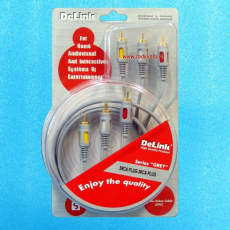 Шнур DeLink 3RCA-3RCA GREY пластик 1.5 метра P3R015P
