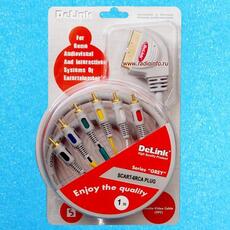 Шнур DeLink SCART-6RCA GREY пластик 1 метр S6R010P