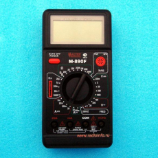 Цифровой мультиметр Mastech M890F производит измерения силы постоянного и переменного тока, величины постоянного и переменного напряжения, сопротивления и коэффициент усиления биполярных транзисторов (h21), емкость конденсаторов и частоту в звуковом диапазоне. Так же с помощью мультиметра M890F можно прозванивать полупроводниковые диоды. Результаты измерений выводятся на цифровой 31/2 -разрядный ЖК-дисплей. Питание мультиметра осуществляется от одной батареи 9В типа "Крона". В комплекте поставки мультиметра Mastech M890F входит комплект щупов и инструкция на русском языке.
