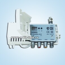 Terra MT 47 телевизионный модулятор - применяется для преобразования низкочастотного сигнала в высоко частотный в дециметровом или метровом диапазоне (1-69к). Применяется с ресиверами, у которых нет ВЧ выход. Встроенный источник питания от сети переменного тока 230V. К ресиверу подключение идет через шнур стандарта "тюльпан". Звук: моно. Рабочие частоты: 170-300МГц/470-862МГц. Уровень выходного сигнала 85дБ.