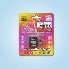 Карта памяти micro SDHC 8GB Card Mirex Class 10 + SD adapter